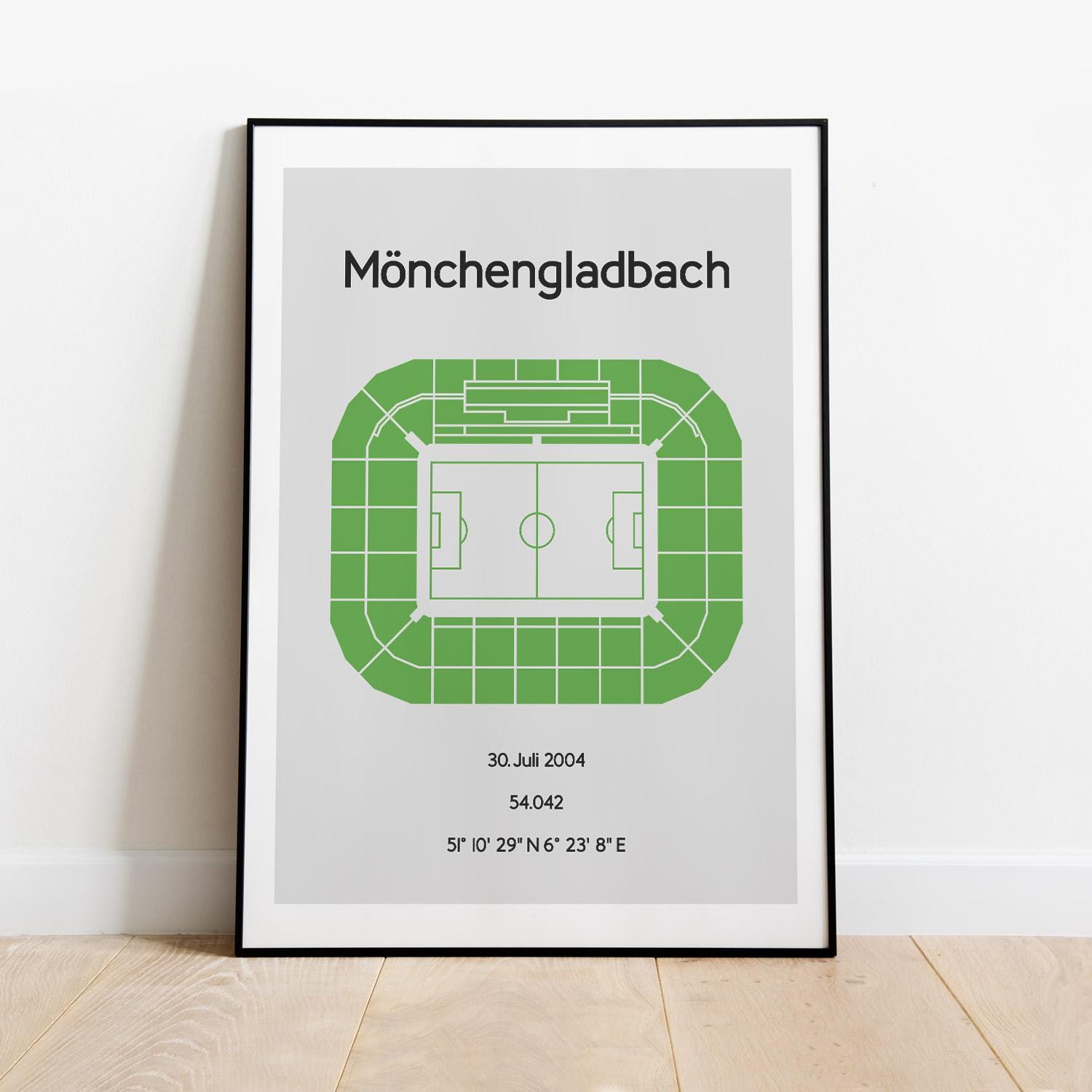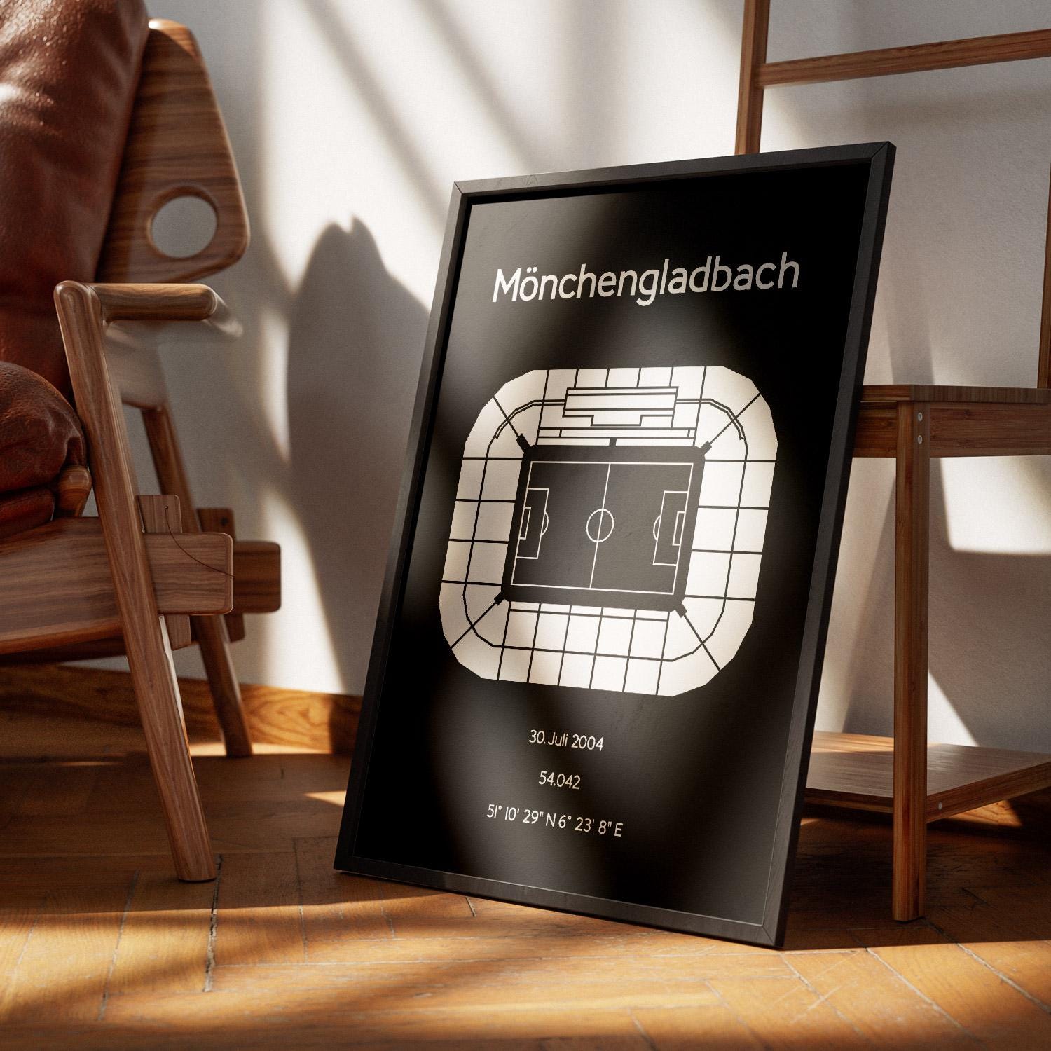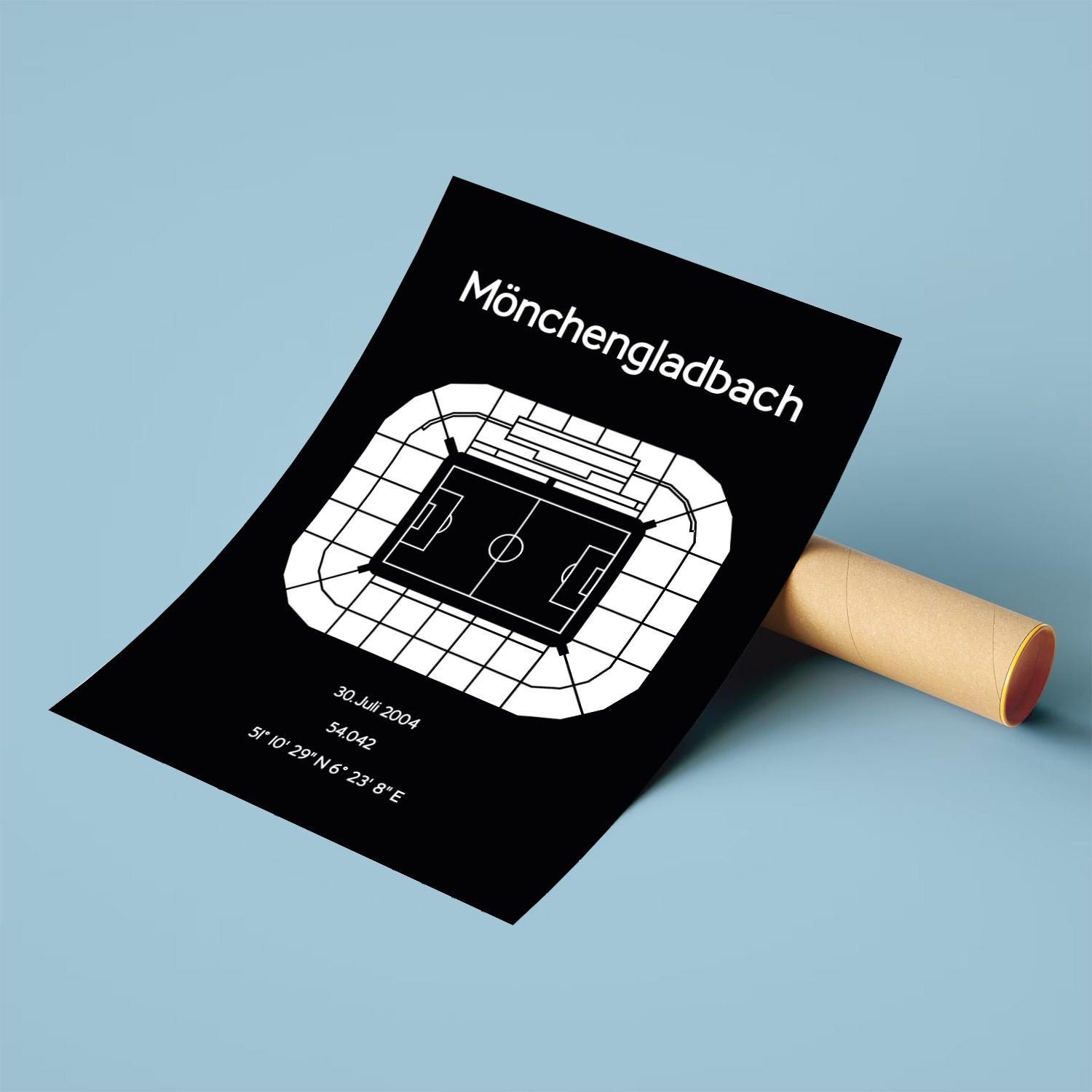 Minimalist illustration of a football stadium, poster design for home and office, Mönchengladbach