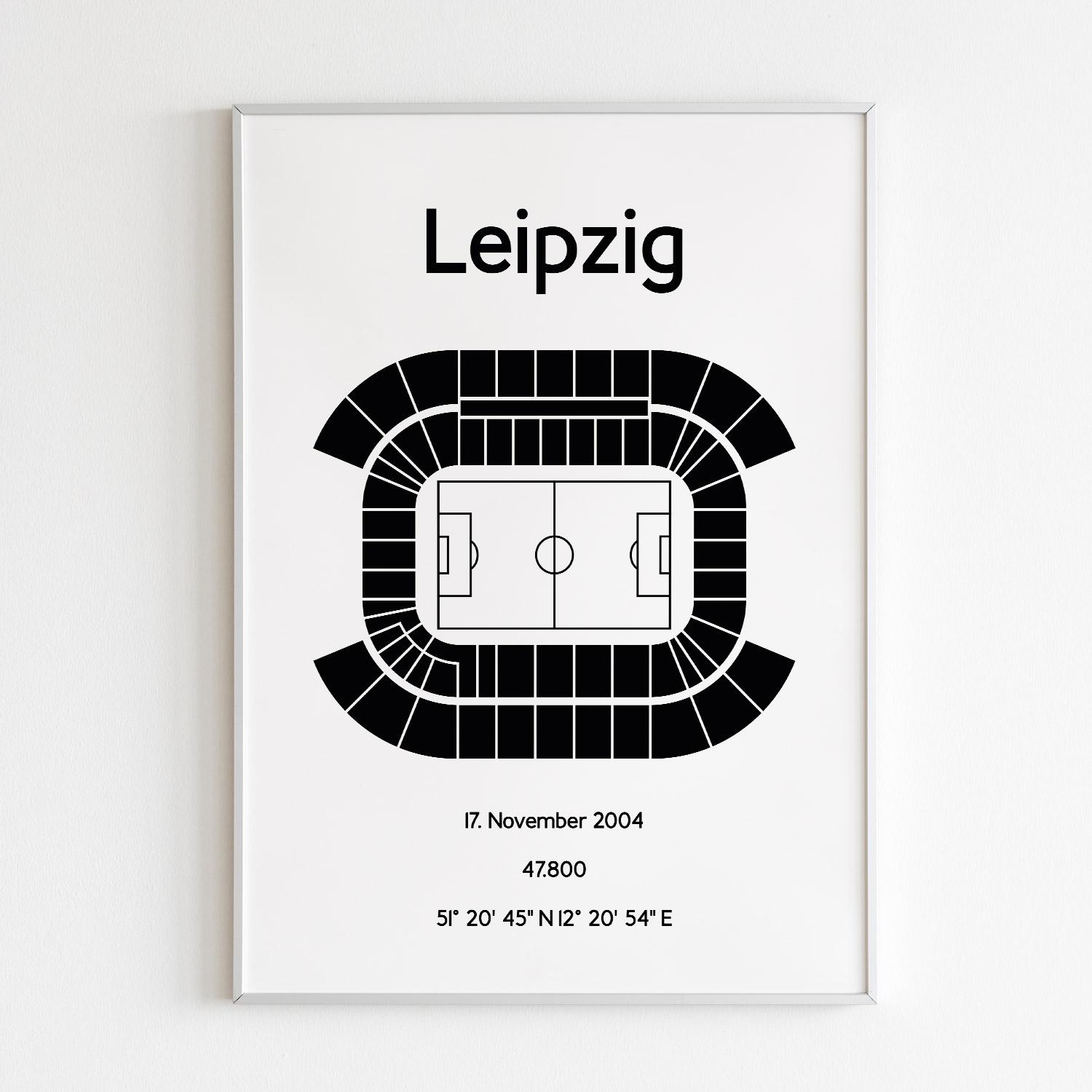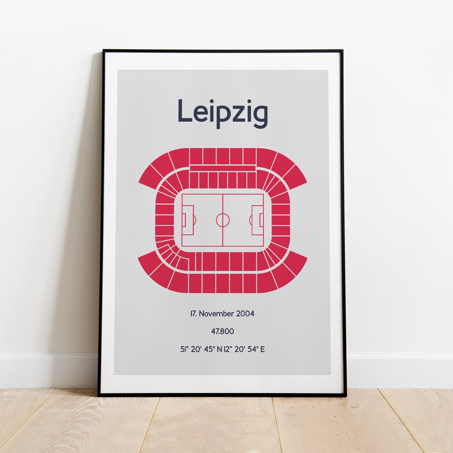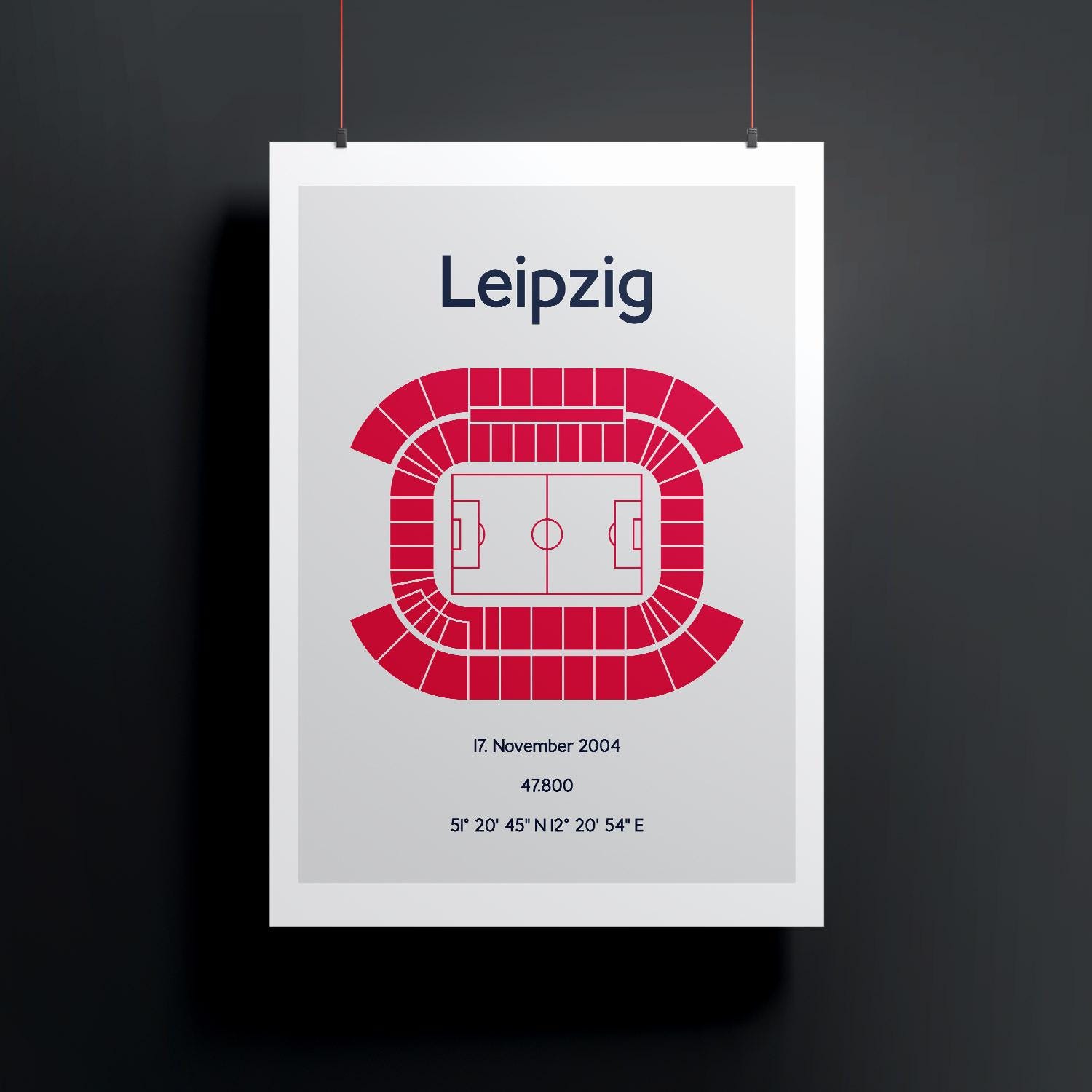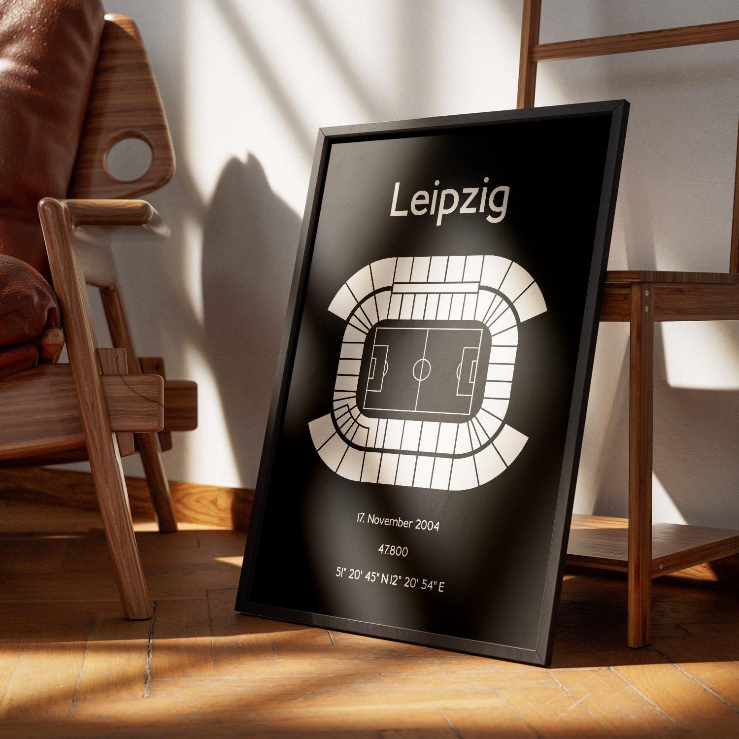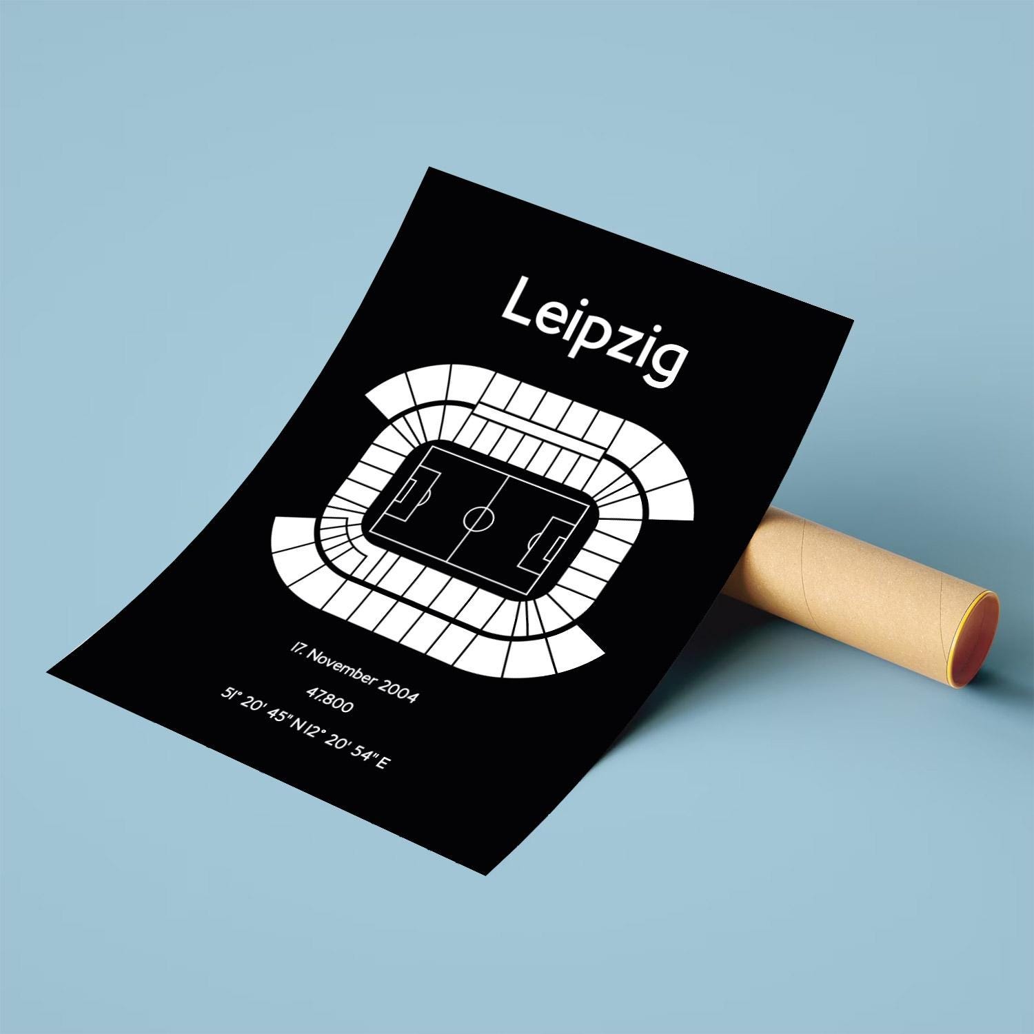 Minimalist illustration of a football stadium, poster design for home and office, Leipzig