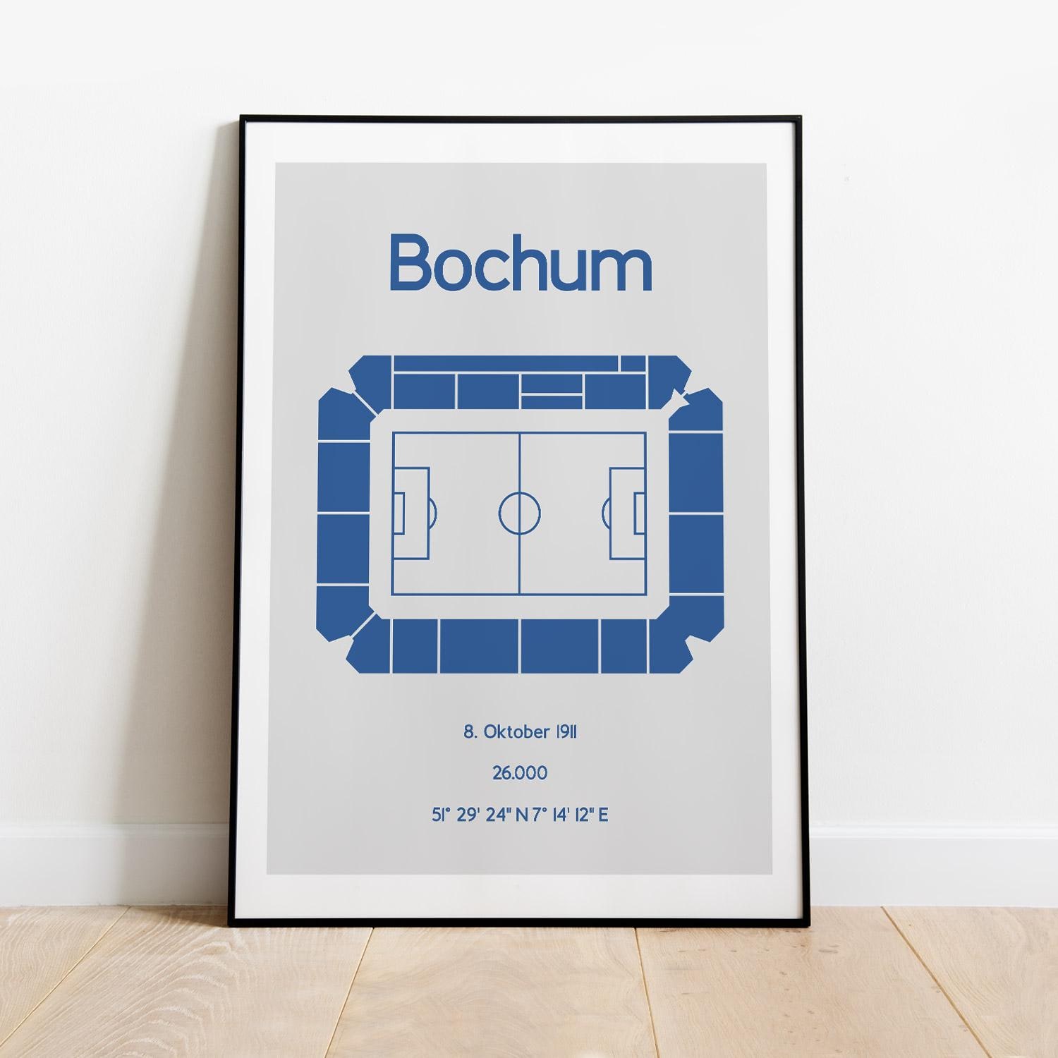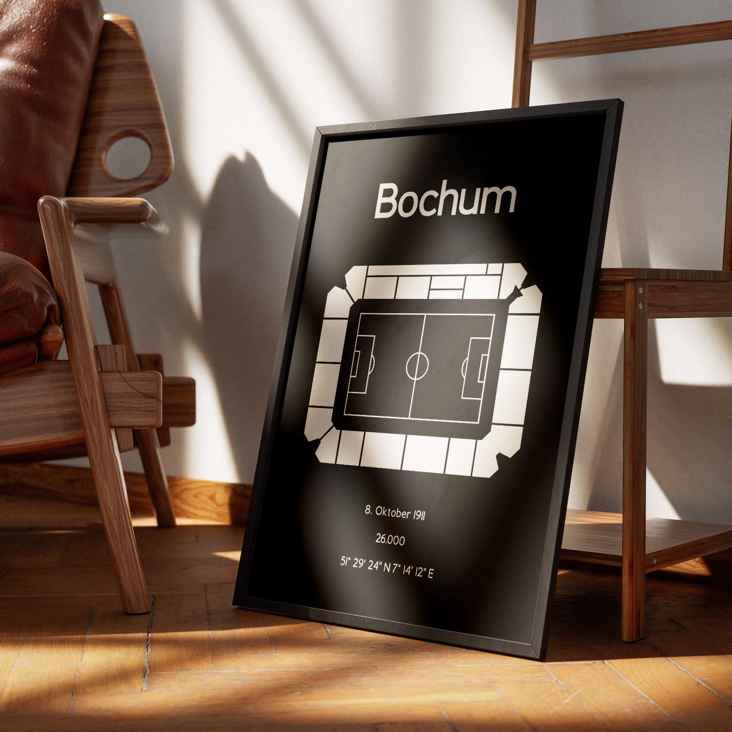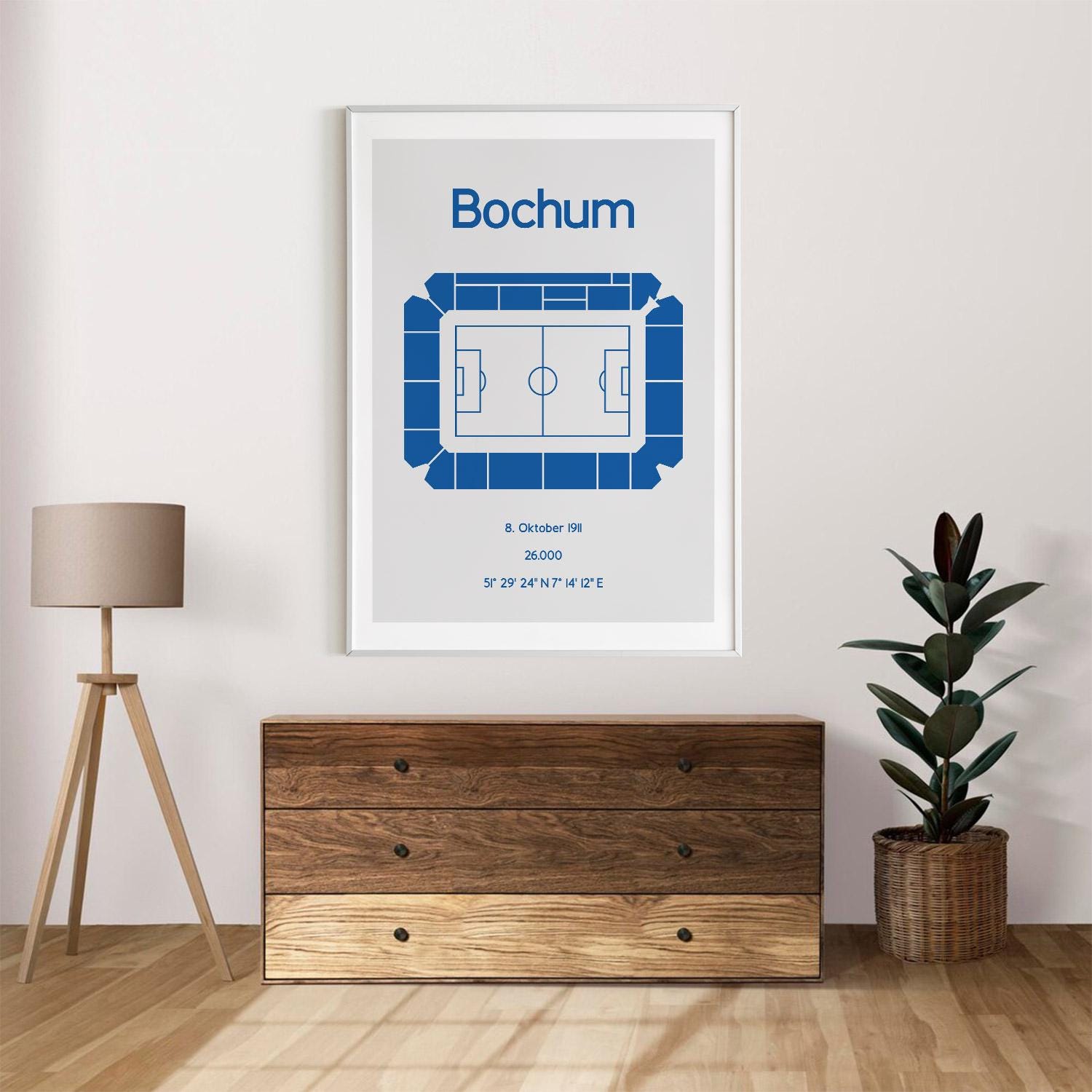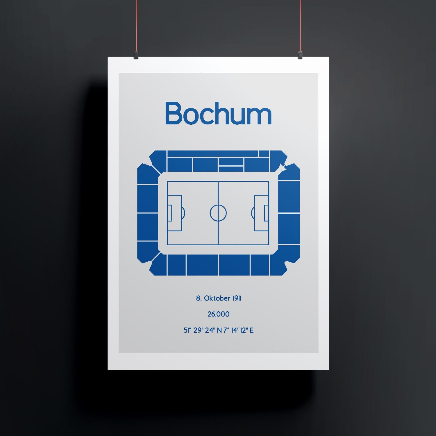 Minimalist illustration of a football stadium, poster design for home and office, Bochum