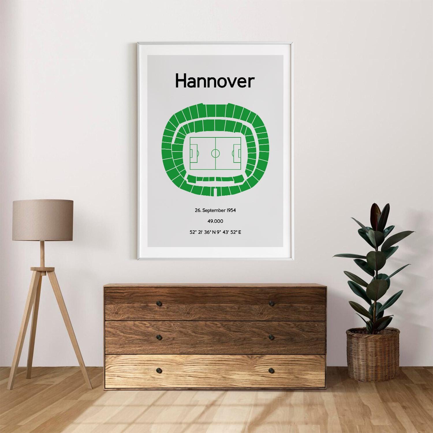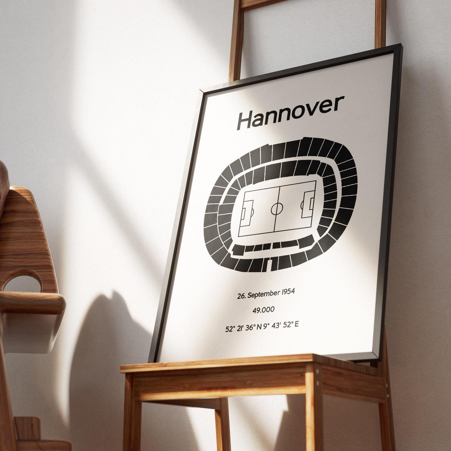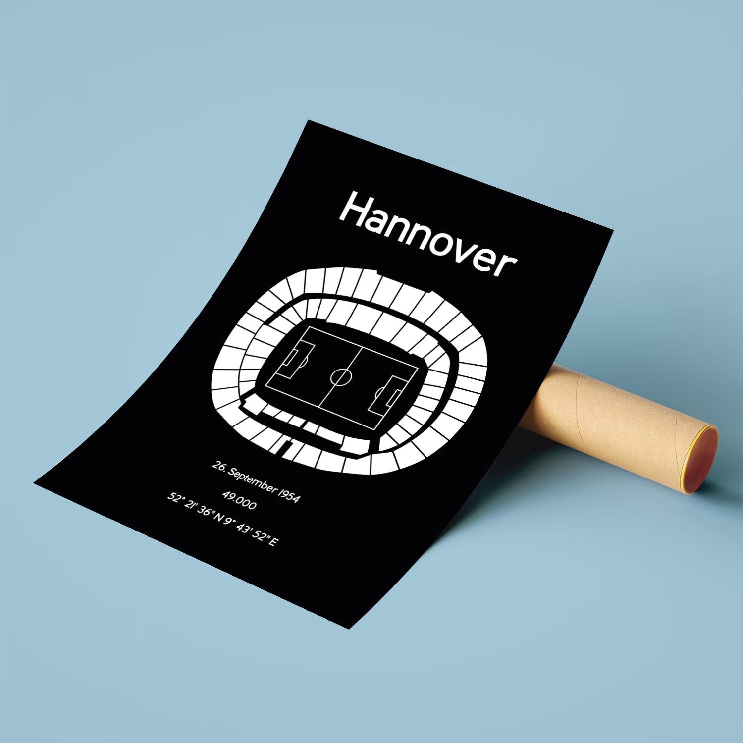 Minimalist illustration of a football stadium, poster design for home and office, Hanover