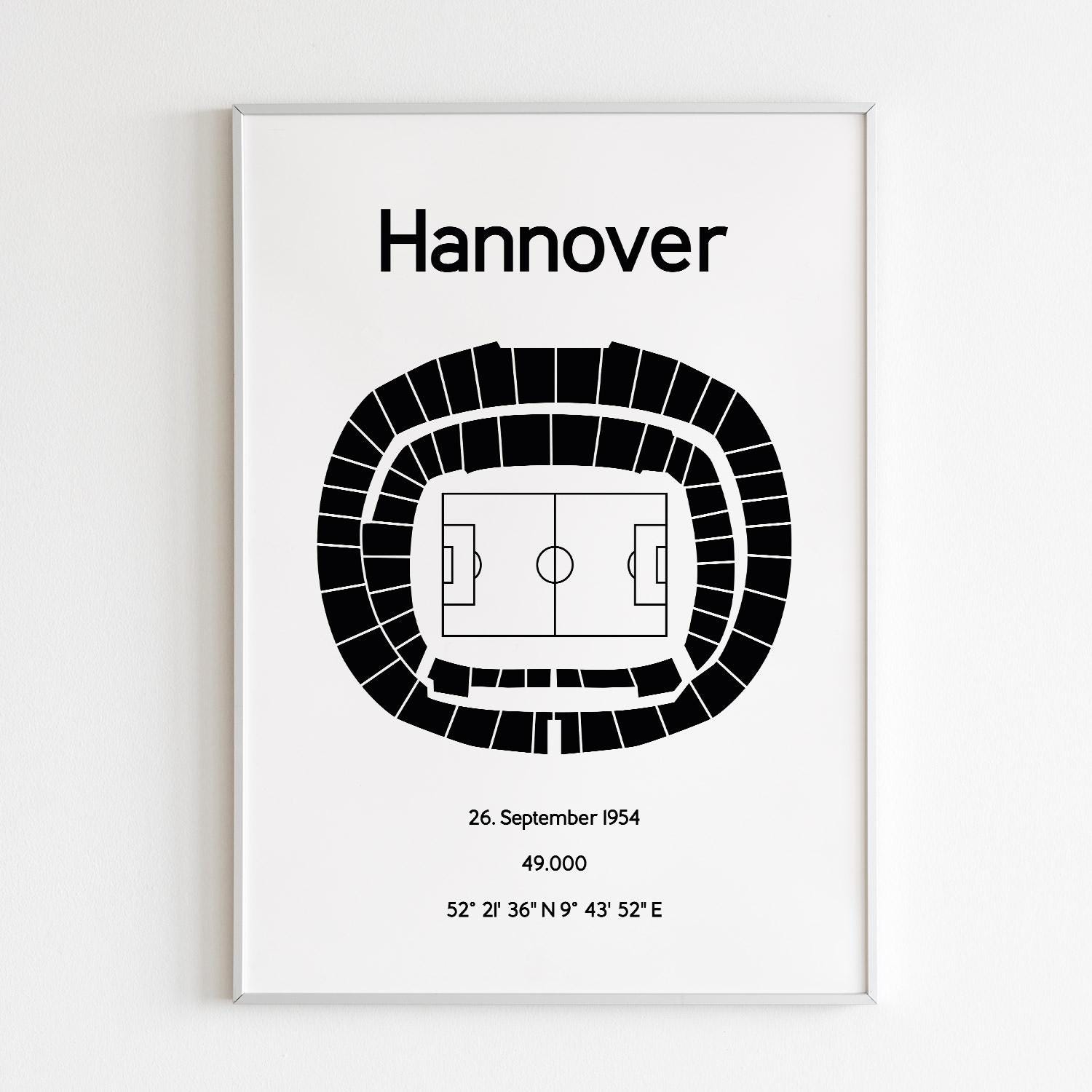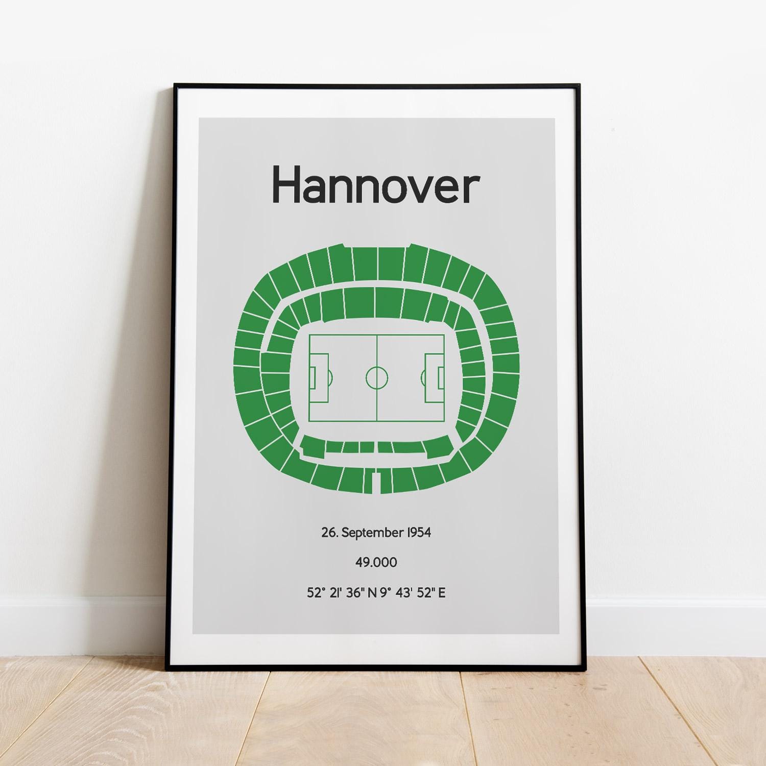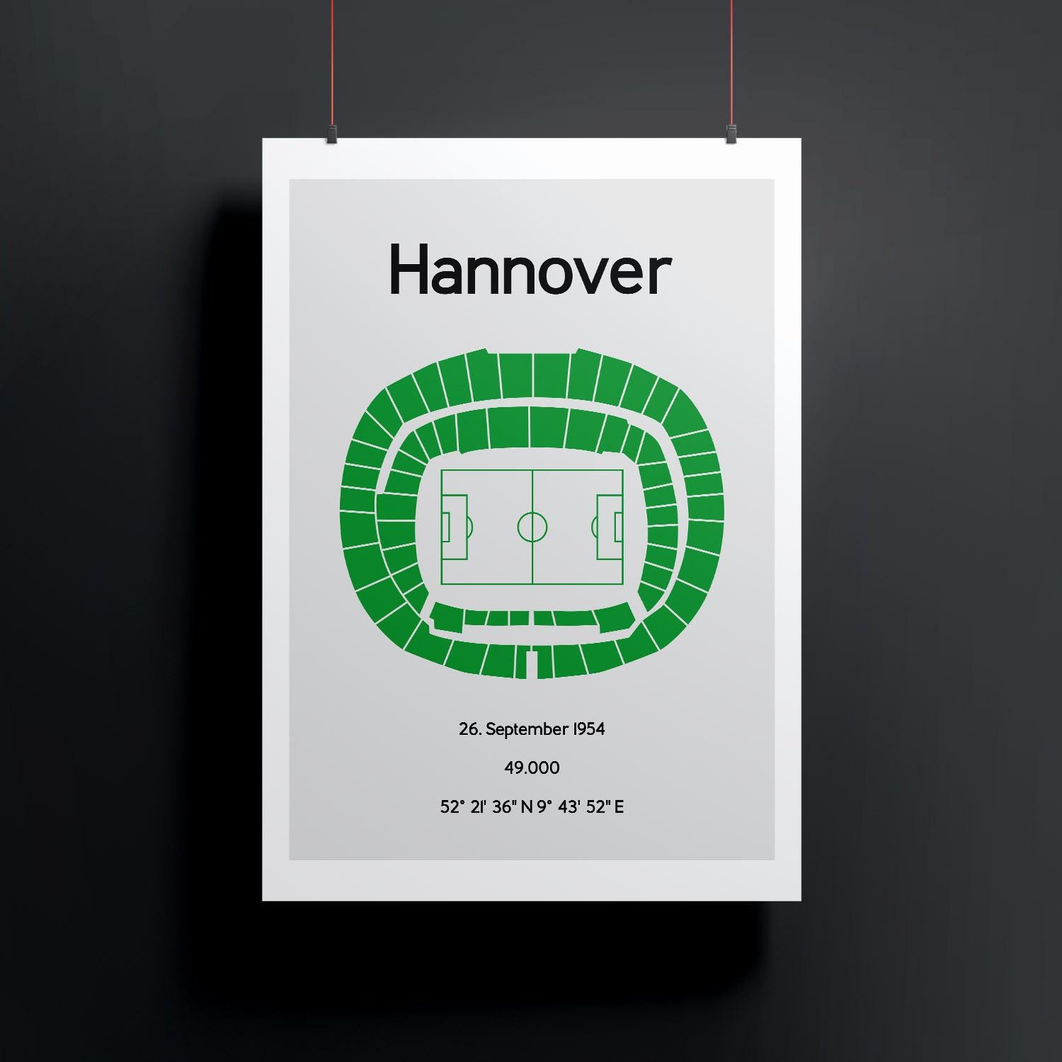 Minimalist illustration of a football stadium, poster design for home and office, Hanover