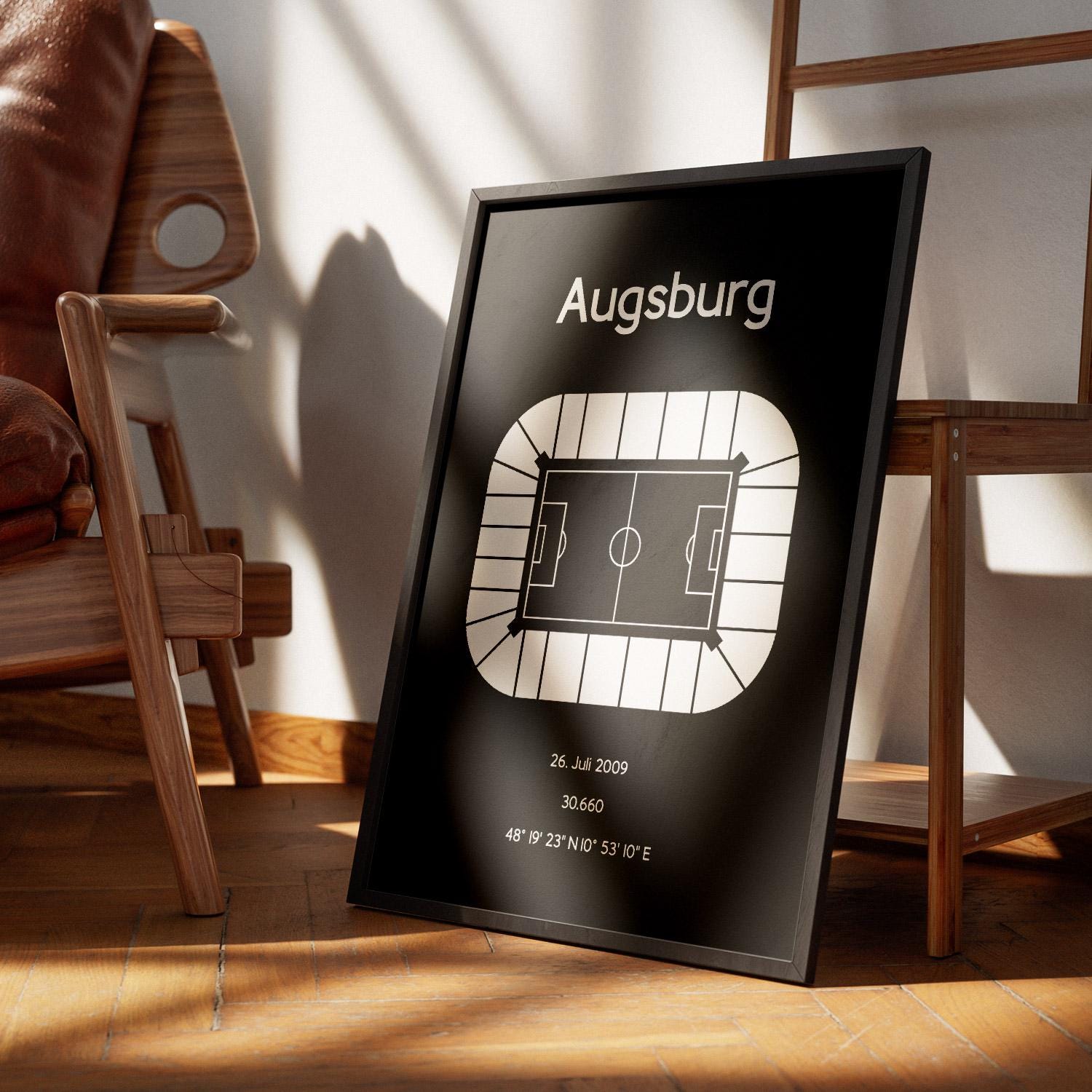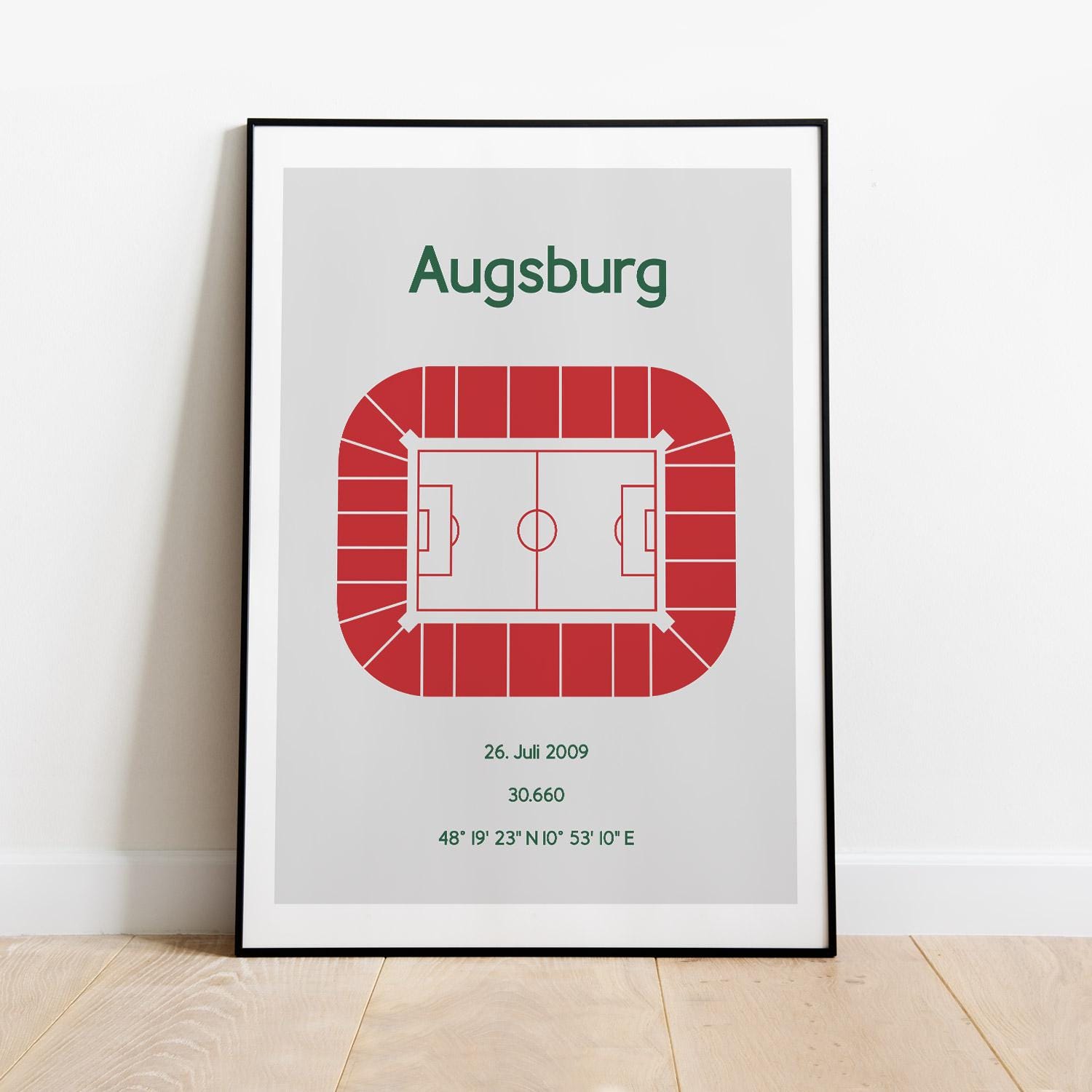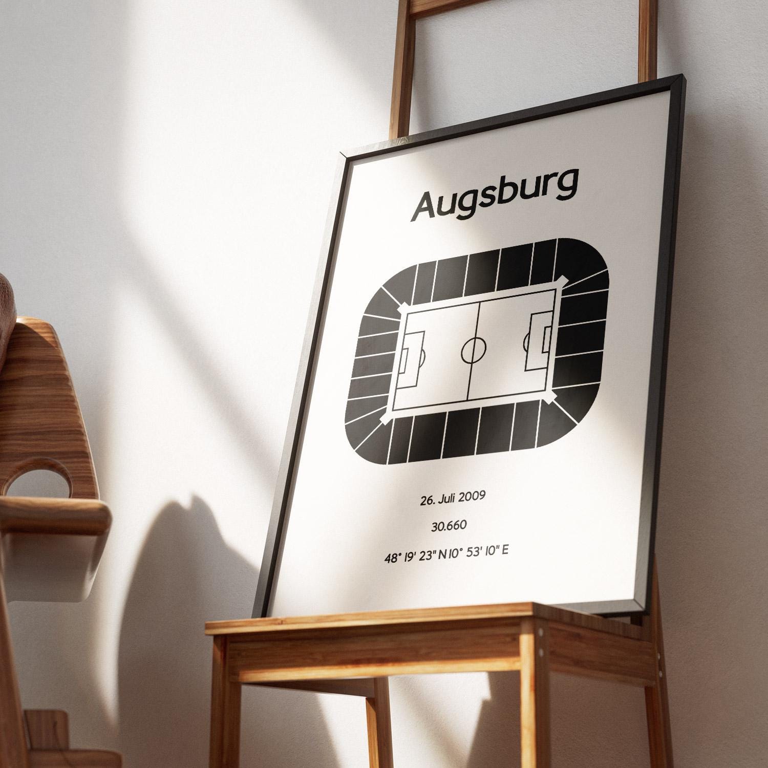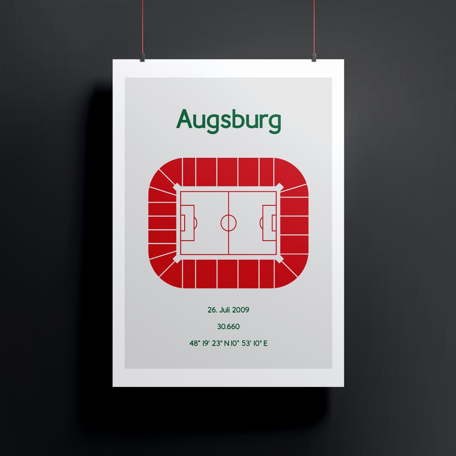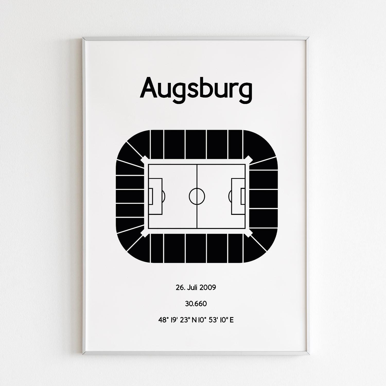 Minimalist illustration of a football stadium, poster design for home and office, Augsburg